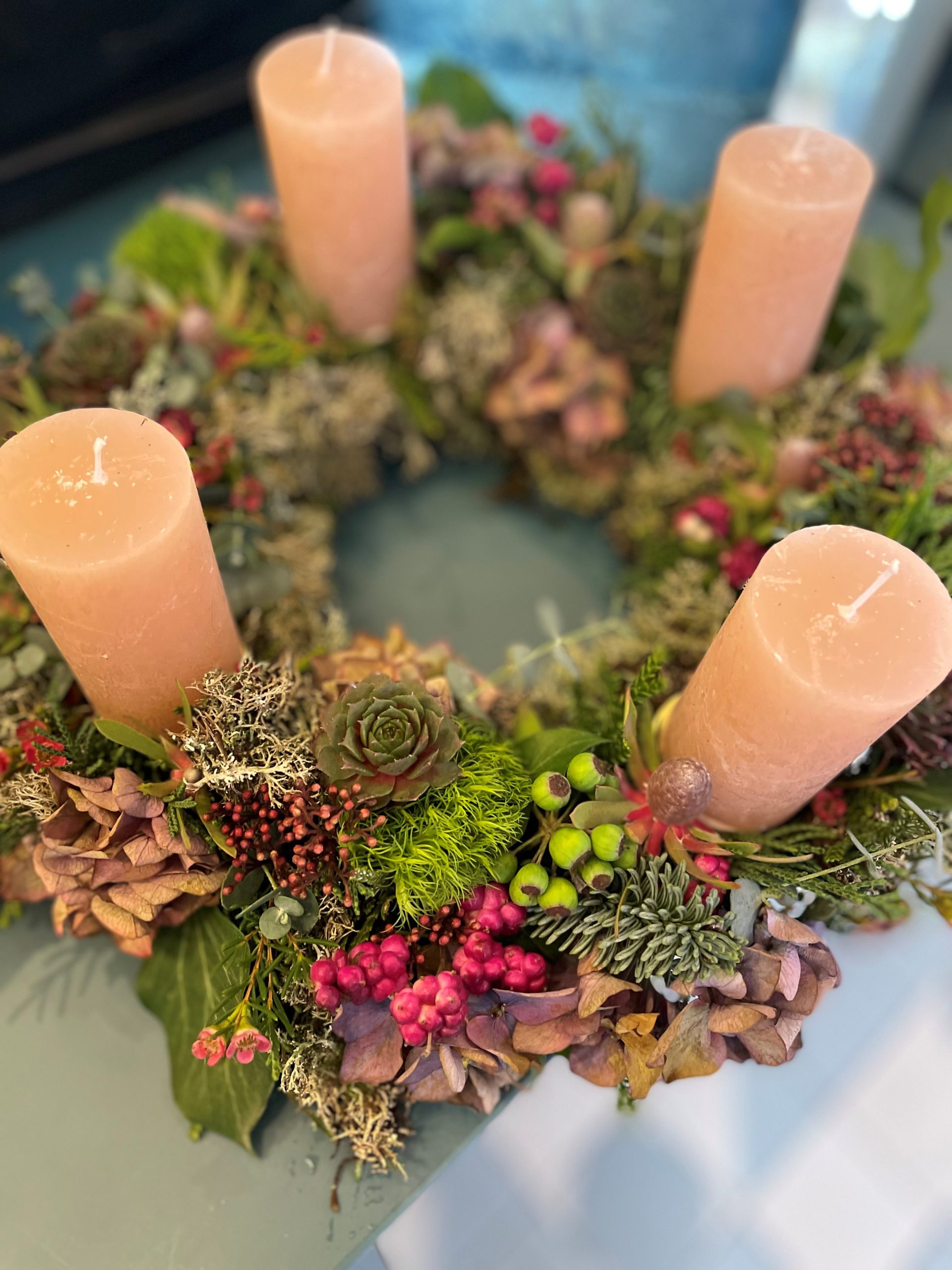 Készítsd el saját adventi koszorúdat, Veszprém közkedvelt virágkötő mesterével! Adventi koszorú készítés tűzött oázisos élő alappal.