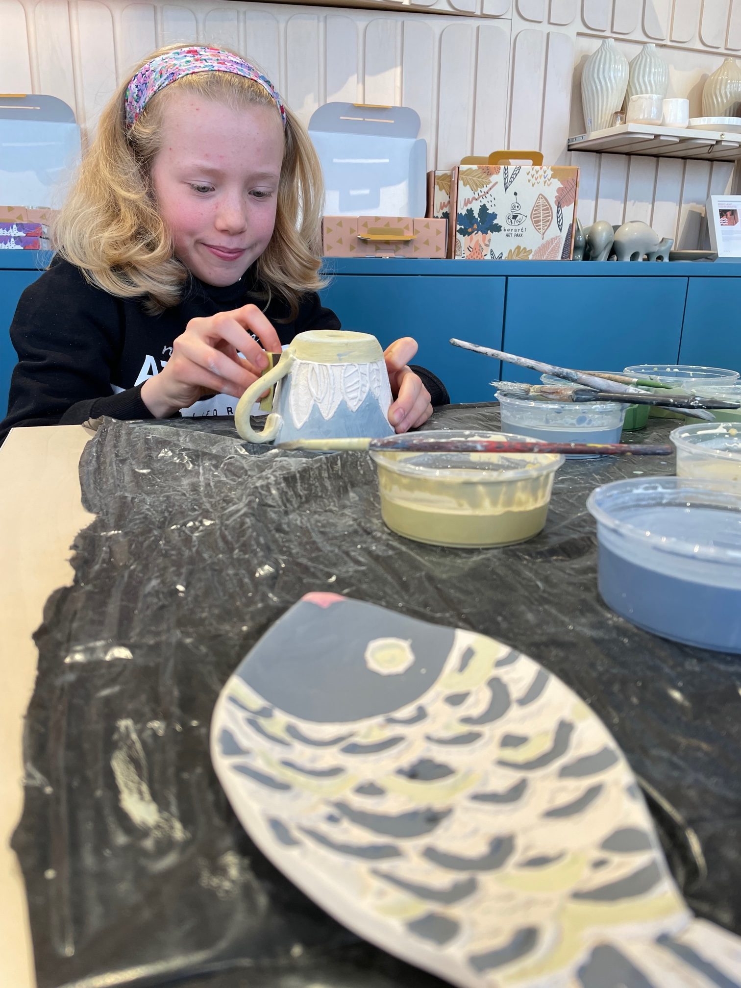 A foglalkozás során számtalan csodás festett kerámia készült el, igazán remek hangulatot teremtve felnőtteknek s gyerekeknek egyaránt.